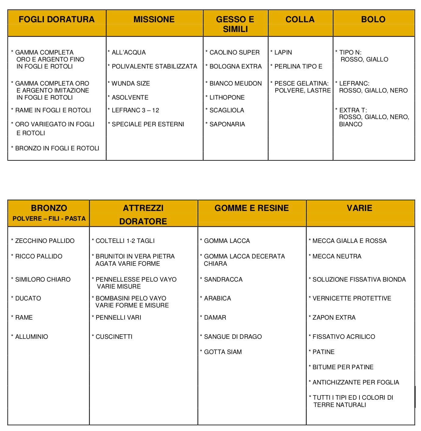 LISTA PRODOTTI
